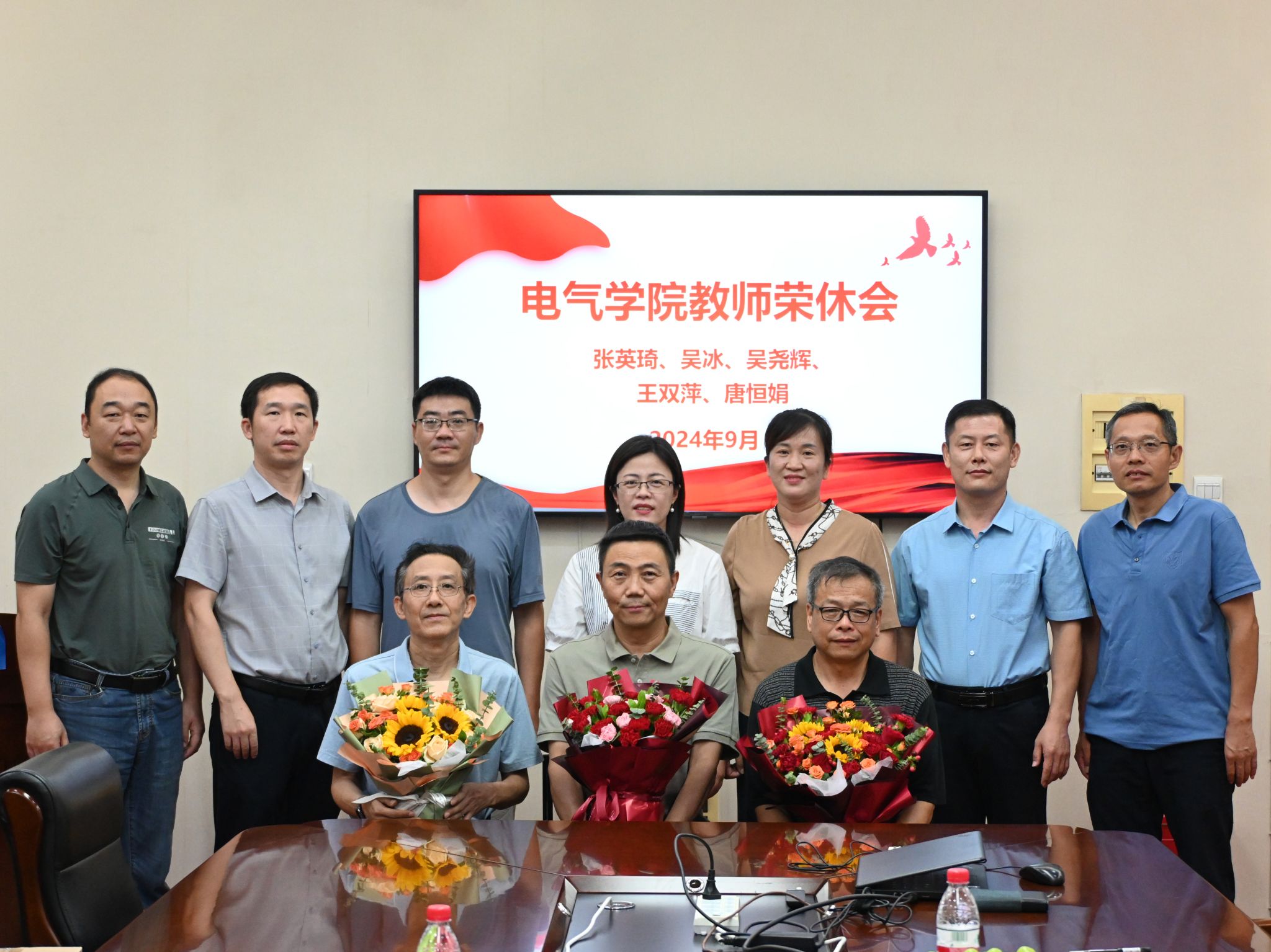 最后,与会院领导手捧鲜花,向五位荣休教师表达了真挚的敬意与祝福,为荣休教师送上纪念品并合影留念。退休教师荣休会在温馨和谐的氛围中圆满落幕,不仅彰显了学院对教师的尊重与关怀,营造了电气大家庭的强烈归属感和浓厚氛围,也传递了尊师重教的优良传统,激励新一代教师和学子以荣休教师为榜样,为教育事业的发展贡献力量。