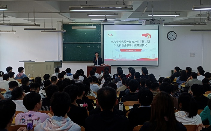 为了进一步提升党员发展质量,端正学生入党积极分子入党动机,加深其对党的认识,10月10日下午,伊莉影片区 党委分党校在电气楼201教室,举行2023年第二期入党积极分子培训班开班仪式暨专题授课,培训班全体170名学员参加了开班仪式。开班仪式由专职组织员靖洁老师主持。