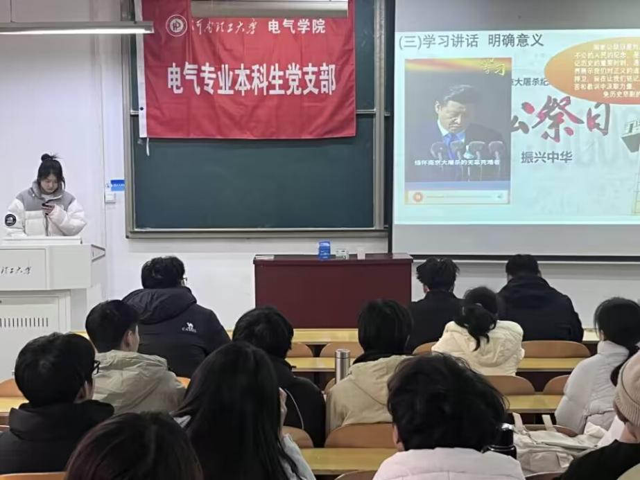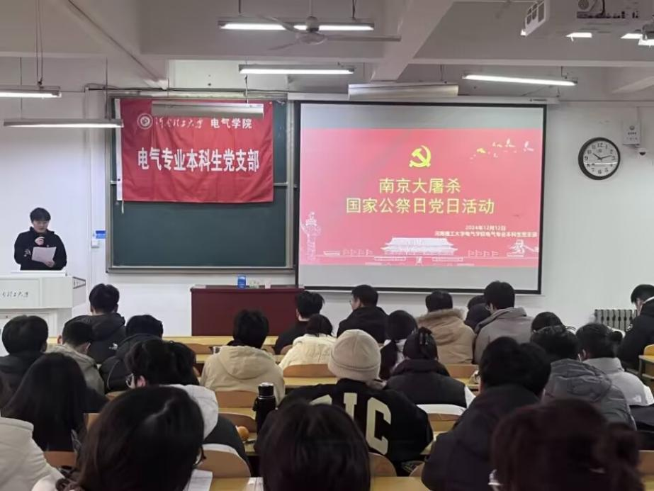 12月12日上午,伊莉影片区 电气专业本科生党支部在电气楼201开展了“铭记历史,共铸和平”为主题的南京大屠杀死难者国家公祭日党日活动,共同缅怀南京大屠杀中的死难同胞。支部全体党员同志共同参加了本次活动。