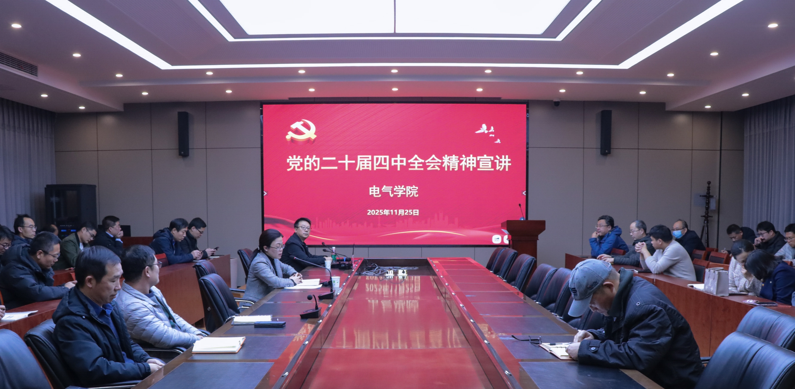 整场报告逻辑严密、重点突出,紧密结合学科实际与行业典型案例,帮助教职工更加精准地把握全会精神的核心要义。与会教师纷纷表示,将以全会精神为指引,立足本职岗位,笃行实干、开拓创新,积极投身学校高质量发展与电气学科建设,为实现新时代教育强国目标贡献力量。