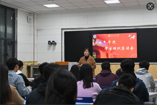学生组织座谈会在电气楼104室召开,学院党委副书记朱伶俐、院团委书记程前出席座谈会并同院团委、学生会、青年志愿者协会、艺术团、新媒体中心、科创中心六大学生组织代表进行了深入交流。