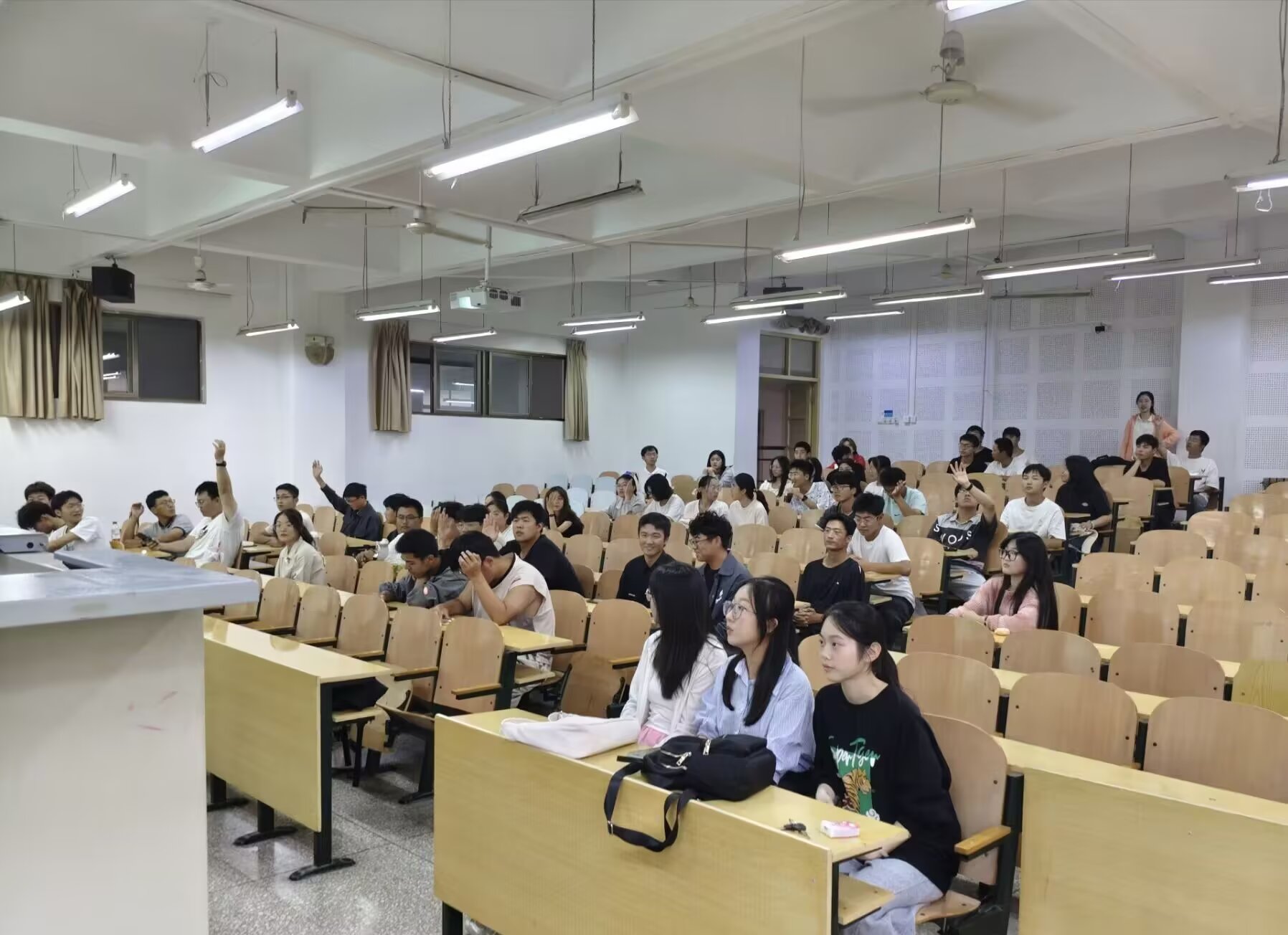 首先,董晨萌介绍了院团委组织的整体架构和近年来取得各项成果,下属各部门负责人依次上台向同学们介绍本部门的主要工作职责以及特色活动。随后,院团委副书记周子菁分享了自己在团委的成长经历和心得体会,她鼓励学弟学妹们要勇敢尝试,积极参与,在实践中积累经验,不断成长。最后,同学们就关心的问题和团委工作人员进行了面对面交流,现场气氛热烈而融洽。