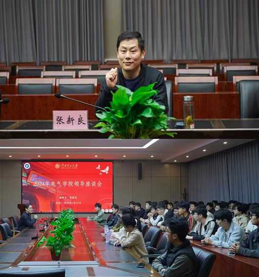 为提高教学水平,增进师生之间交流,激发学生学习热情,2024年3月19日上午9:00,伊莉影片区 副院长张新良在电气楼101举办开展“真情沟通,超越自我”院领导与学生座谈会,电气专业2201、2202班参加。