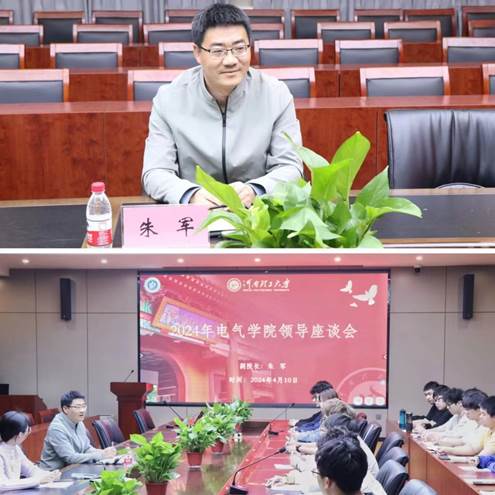 座谈会上,朱军以提问形式为主线,与同学们展开了热烈的互动。对学生代表们的提问,悉心聆听并给予了深邃而富有见地的指导。在谈到就业问题时,朱军强调,电气工程专业就业前景广阔,同学们应树立正确的就业观,注重实践能力培养,全面提升个人综合素质。针对考研问题,朱军表示,考研是提升学术水平和就业竞争力的重要途径,同学们要提前规划,明确目标。此外,朱军还就学习方法、课程设置等问题与同学们进行了深入交流,鼓励大家养成良好的学习习惯。最后,朱军副院长表示,学院将持续瞩目每位同学的成长轨迹,携手并肩共创未来。他希望同学们珍惜时光,勇往直前,为实现自己的人生目标而努力奋斗。