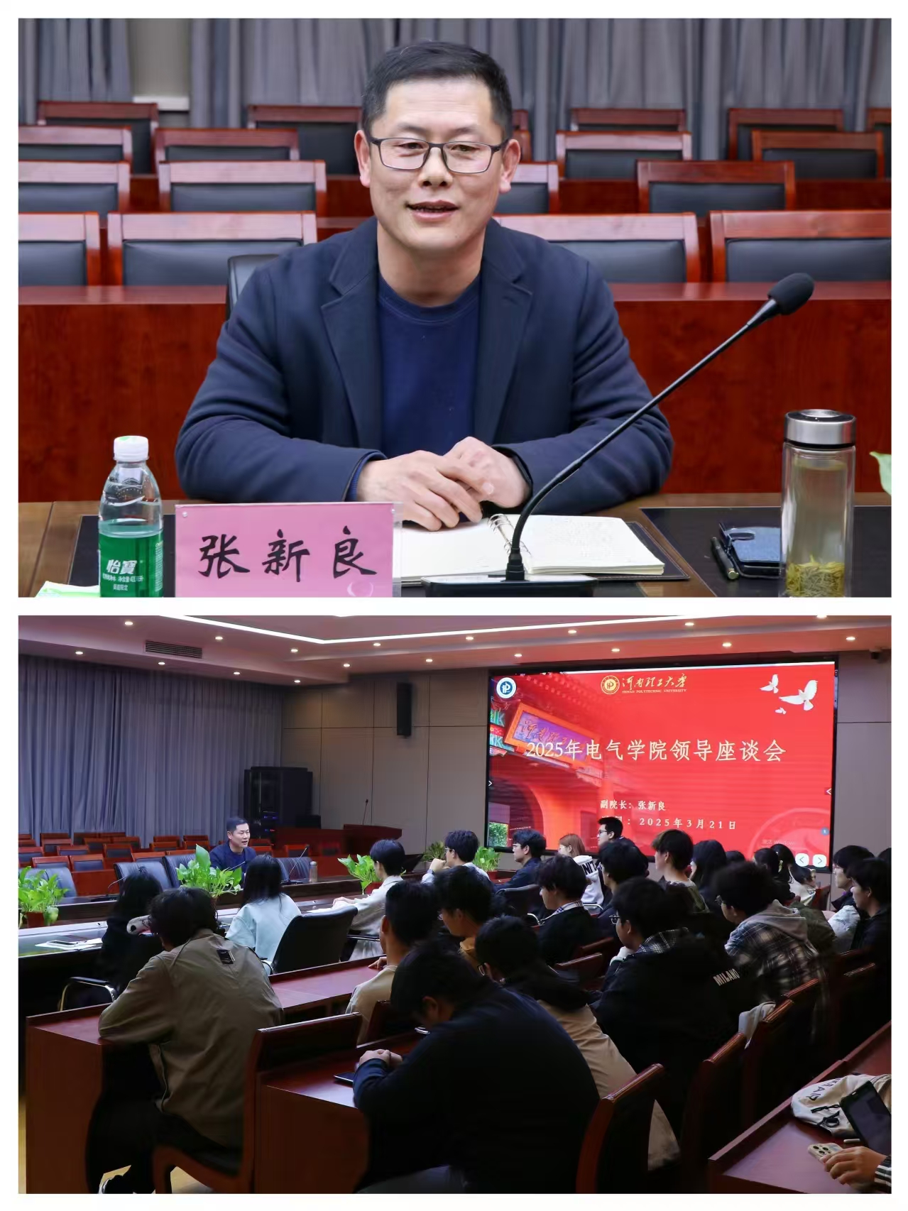 座谈会上,张新良首先表达了对同学们的关心和期望,鼓励大家畅所欲言,积极提出意见和建议。他询问学生上学期的学习情况,总结共性问题,希望大家注重通识课的学习,树立终身向学思想,拓宽知识视野,锤炼思维格局。随后,张新良就早操、晚归寝打卡及宿舍安全等问题与同学们展开讨论,并提出三点要求:一是要坚持晨跑,锻造强健体魄;二是要归寝守时,恪守校园秩序;三是要重视安全,杜绝违规电器。会议现场气氛热烈,同学们纷纷表示将在新学期兼顾理论学习和身体锻炼,踔厉奋发,不负教诲。
