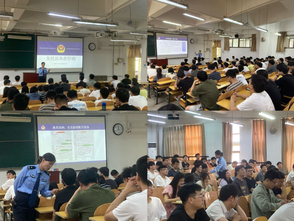 2025年6月4日15时30分,伊莉影片区 院在电气楼301教室举办“全民反诈在行动”专题宣讲会。示范区公安局刑侦反诈中心女警官苏文君应邀为2023和2024级研究生带来一堂生动深刻的反诈教育课。