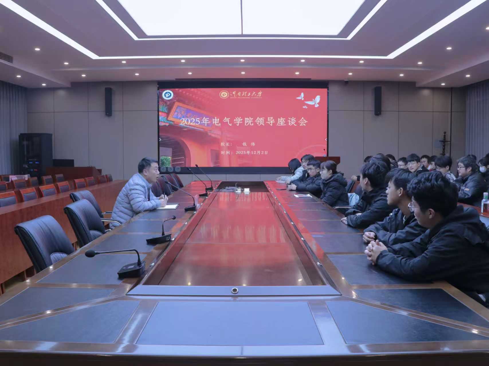 座谈会上,钱伟首先表达了对同学们的关心与期望,鼓励大家畅所欲言,积极分享对学习与生活的想法和感悟。针对同学们的发言,钱伟围绕电气专业特色、发展前景及学业规划等话题展开讨论,并提出三点希望与要求:一要锚定发展航向,夯实专业基础,用过硬学识筑牢发展根基;二要谋划成长路径,提升实践能力,用学科竞赛积累升学优势;三要聚焦自身所长,打造能力标杆,用领域专研铸就竞争壁垒。现场氛围融洽,同学们纷纷表示将以奋进姿态走好大学路,砥砺前行,不负嘱托。