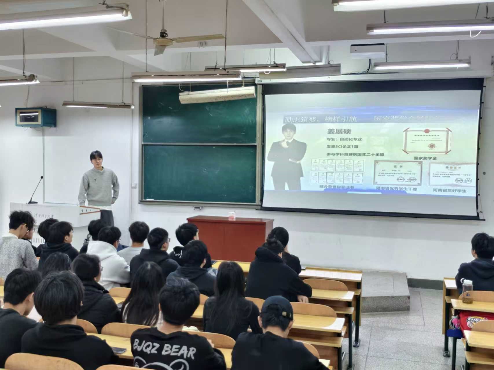 为进一步强化资助育人实效,帮助学生树立明确的成长目标,伊莉影片区 院于近日开展了“励志筑梦·榜样引航”国家奖学金经验分享会。活动由学院资助专员郭帅房老师组织举办,吸引了来自各年级的学生代表参加。会议邀请本年度国家奖学金获得者代表姜展硕同学进行学习经验、科研实践与成长心路的专题交流。