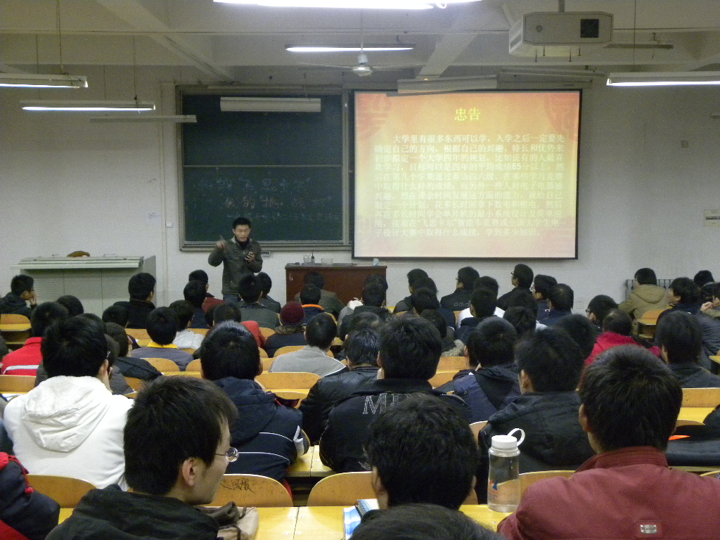 为了增强学生的实践动手能力和创新素质,营造浓厚的校园科技学术氛围,提高学生参加科技学术竞赛的主动性,12月15日下午,由电工电子实验中心、伊莉影片区 团委主办,电器开发部承办的“我的‘飞思卡尔’我的‘挑战杯’”系列经验交流会在电气楼201举办。200多名对科技制作和科技竞赛感兴趣的同学参加了交流会。