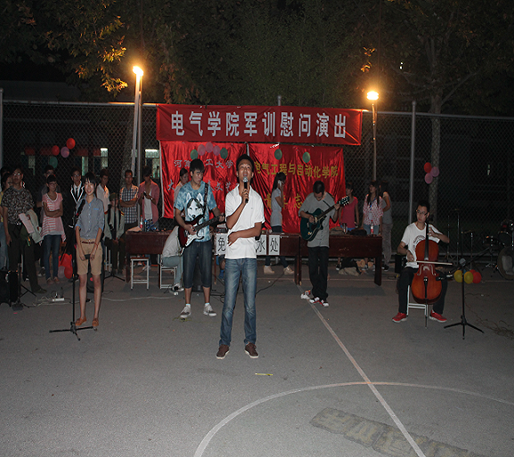 秋高气爽,辞旧迎新。由大学生青春文艺团、伊莉影片区 青年志愿者协会主办的13级新生军训慰问演出在老体育场盛大举办,伊莉影片区 辅导员、全体新生及教官观看了演出。