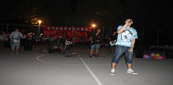 晚会在雾尼乐队的《young for you》精彩表演中正式拉开序幕,热烈的架子鼓和吉他声点燃了在场同学们的热情,昂扬活力的音乐展现了当代大学生洋溢着的青春与激情;学生街舞,动感十足、激情四溢,场上尖叫声响彻云霄,大家挥舞着荧光棒,跟着旋律摇摆起来,将晚会带到了一个高潮;军训军官的舞蹈表演,将hipop和jazz完美地融合在一起,配上新生强劲有力的武术表演,现场尖叫声、尖叫声、口哨声此起彼伏;《抢板凳》,有趣的游戏规则营造了紧张刺激的气氛,让大家体会到快乐竞争的乐趣;相声《军训那些事》给晚会营造了轻松快乐的气氛,幽默的语言和搞笑的动作使同学们不禁捧腹,也将大家的记忆停留在了美好的军训时光,使大家深切体会到吃苦耐劳的品质和团队合作的精神;轻快活泼的吉他弹唱,让我们的心情激越昂扬;热情奔放的旋律,节奏感极强的歌曲串烧《私奔》、《我想大声告诉你》、《只对你有感觉》使现场观众情绪高涨,赢得阵阵掌声和尖叫声。整场晚会充满着青春的气息,晚会在热烈的气氛中圆满结束。
