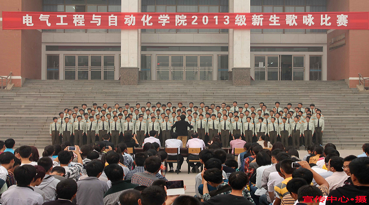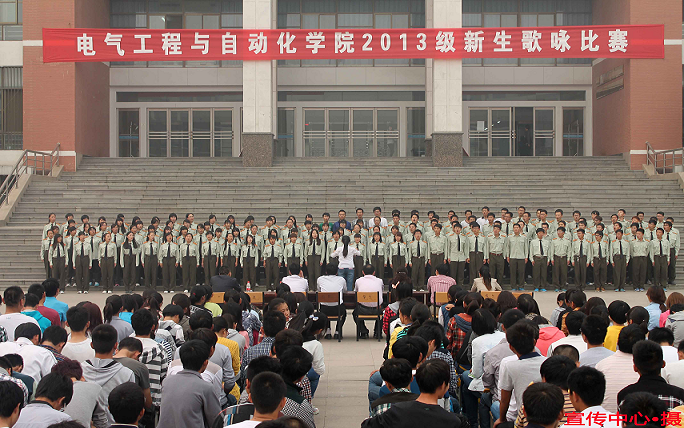 10月8日下午,伊莉影片区 院2013级新生歌咏比赛在图书馆门前举行。校团委副书记陈昊,学院党委副书记王瑞,院团委书记郑伟,音乐学院赵杰、杨莉丽、董狄,2013级辅导员王帅、皇甫彩虹、谭雪青以及2013级近千名新生共同观看了比赛。