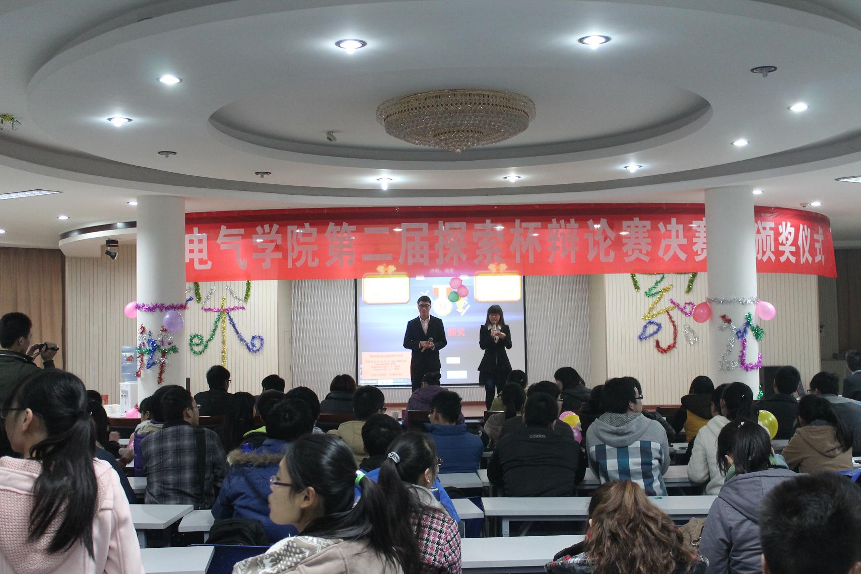 旁征博引舞青春,谈天说地赢未来。为丰富大学生的科学文化生活,培养同学们善思、善辩的能力,11月22日下午,伊莉影片区 第二届“探索杯”辩论赛决赛及颁奖仪式在我校大学生活动中心二楼拉开帷幕。此次大赛由该院11级自动化专业主办,面向全院四个年级的所有学生。担任本场比赛的评委有:伊莉影片区 党委副书记王瑞、学院全体辅导员等。