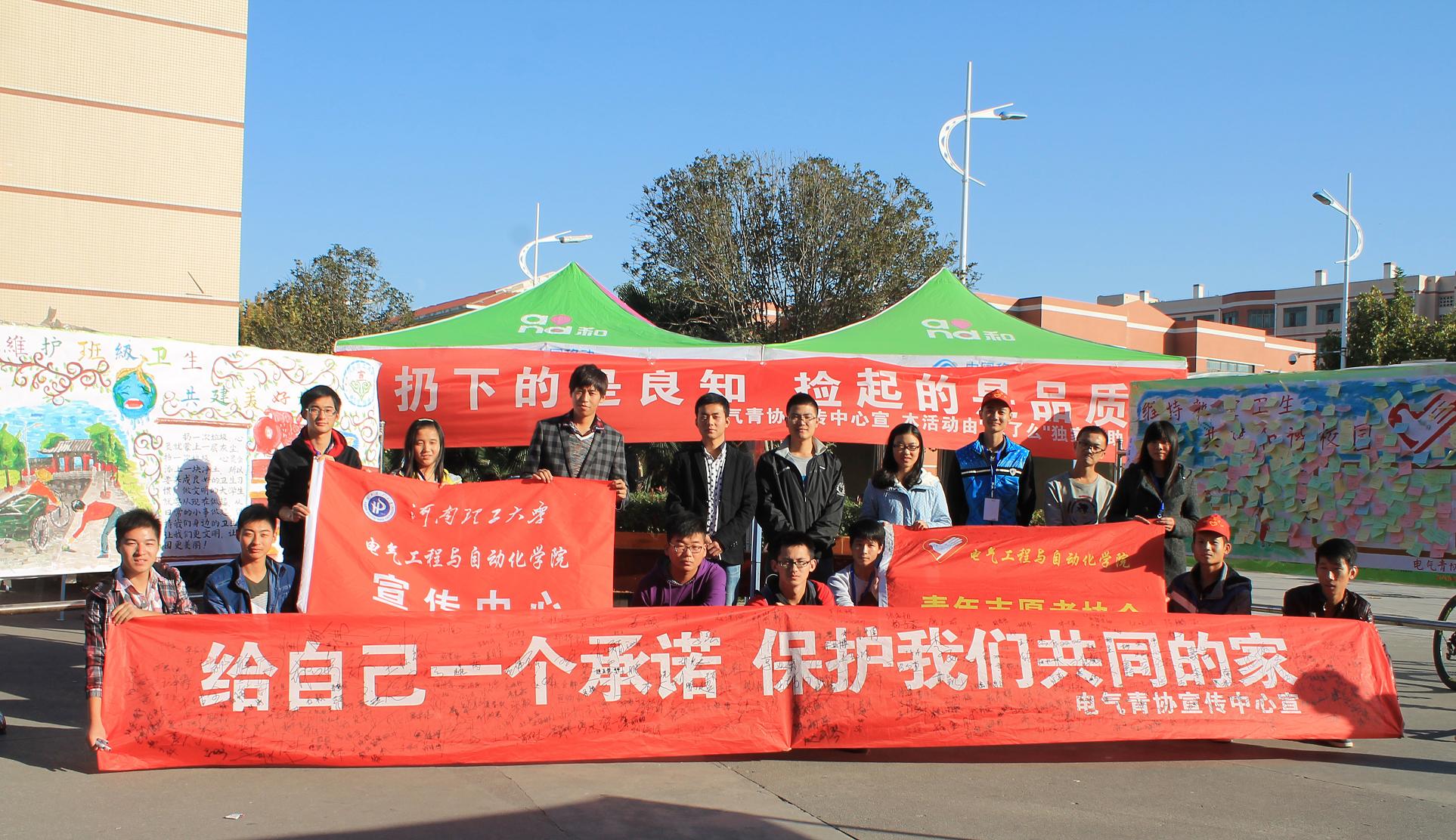 为促进同学们养成良好生活习惯,打造更洁净美好的学习环境,11月1日至2日,伊莉影片区 青年志愿者协会与宣传中心联合举办了以“扔下的是良知,捡起的是品质”为主体的教室维洁系列宣传活动,此次活动在电气楼与学苑餐厅东门同时展开。
