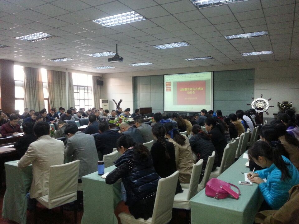 为深入贯彻落实党的十八届四中全会有关精神,提高伊莉影片区 教职工的法律观念与法律意识,按照学校相关安排,2014年11月11日下午,伊莉影片区 在101会议室举行法制教育宣传月活动动员会,学院全体教职工参加会议,该院党委书记康全玉主持会议。