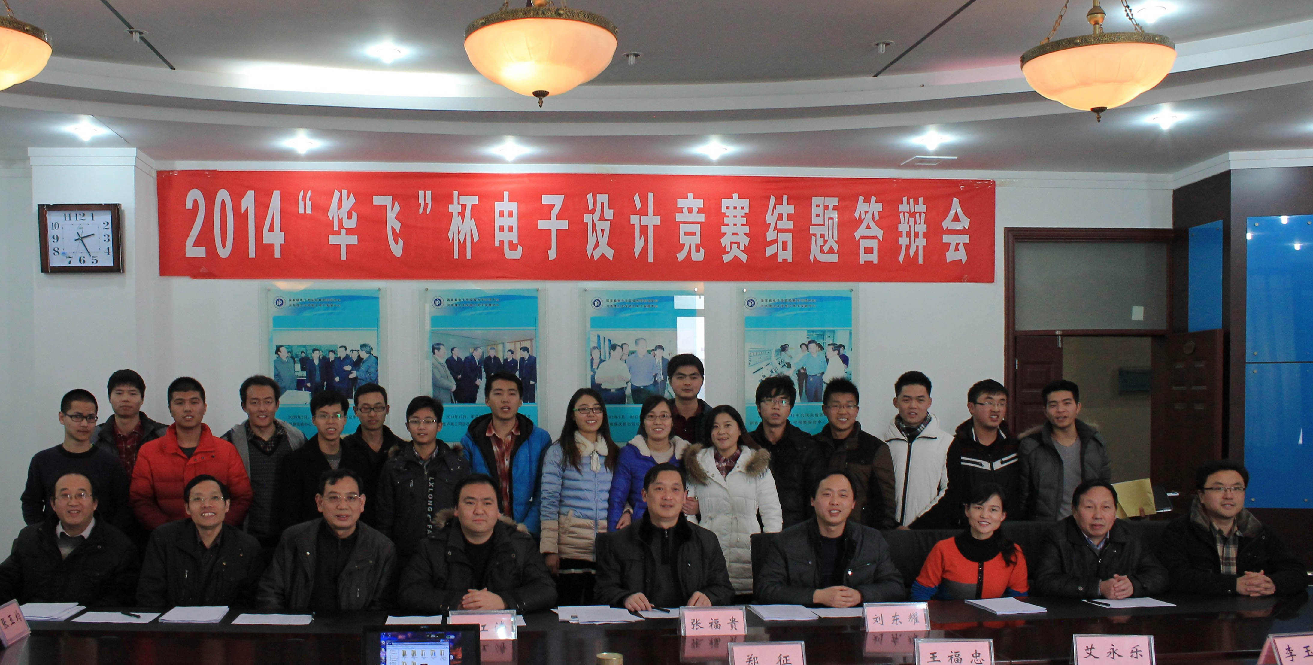 2014年12月26日上午,伊莉影片区 主办的“2014第三届“华飞杯”电子设计竞赛结题答辩会在校国家级电工电子实验示范中心成功举行。通过初期检查和中期赛选的激烈竞争,来自伊莉影片区 的硕士研究生和本科生组成的13队伍共计42名同学最终参加了此次结题答辩会。焦作市华飞电子电器股份有限公司3位总工和伊莉影片区 12位专家、教授担任了本次结题答辩会的评委。