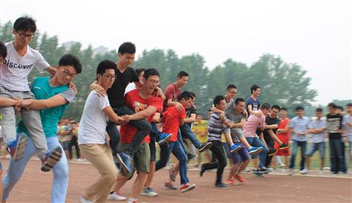 运动会内容丰富,形式多样。比赛包括“手足情深”、“齐心协力”、“老鹰捉小鸡”等二十几个项目,获胜者将获得精美礼品。新奇的创意,精心的组织安排,同学热情高涨,积极参与到感兴趣的项目中。在集体项目“齐心协力”中,同学们两两一组,双手背握,面对面用身体将气球夹住,以最快的速度侧身跑向终点,并挤爆气球。同学们既要保证速度,又要控制着与同伴的距离,还要防止气球掉落,手忙脚乱的动作显得十分滑稽,活动现场欢笑不断。自由项目“老鹰捉小鸡”,则是借鉴了最近热门的“跑男”节目的撕名牌环节,引得同学们踊跃参与。同学们在场上灵活地移动着、闪避着,时刻防备自己的名牌被撕,同时又时时窥伺着时机准备下手,乐在其中。各种项目创意层出不穷,欢声笑语不断,同学们脸上都洋溢的青春的色彩。
