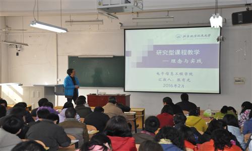 此次培训为期两天,分四场进行。学院积极筹备,邀请到四位校内外专家学者进行讲座。25日上午,北京航空航天大学教授张有光为全体教师作了题为《研究型课程教学——理论与实践》的专题报告。张有光从研究性教学理念研究、研究性教学实践探索和研究性教学课程实例三个方面,详细阐述了研究性教学理念和实践的内容、历史发展,并结合北航的研究性课程教育实践与参会老师进行了交流。紧接着,张有光从人才培养的背景和目标出发,结合社会与科技发展面临的挑战,介绍了电子信息工程专业培养方案的修订和实施。25日下午,学校财务处处长梁丽娟受邀为大家做了一场《财务经费预算与合理使用》的报告。梁丽娟从财务制度的含义讲到学校财务制度体系的建设,由浅入深,与实际结合密切。在讲到《伊莉影片区 经济活动立项管理办法》等相关文件时,梁丽娟结合财务实例进行了重点解读,为该院教师进一步了解上级和学校的财务制度、规范财务行为起到了重要的指导作用。