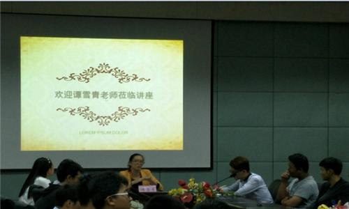 讲座分为倾听、交流和互动三个环节。首先,针对大学学习生活,在坐的同学提出自己的问题。谭老师对问题进行归类后,从心理学的视角,对大学生如何提高自己的理财能力和独立以及鉴别能力,如何快乐的学习和度过大学生活进行了讲解。在互动环节,谭老师通过团体心理辅导游戏,促进同学们彼此之间的关系,培养大家的认同感和团队合作精神。
