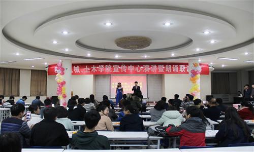 为促进各学院宣传中心之间的交流和合作,激发学生演讲朗诵热情。由电气、机械、土木学院宣传中心联合举办的演讲与朗诵比赛于12月4日晚在校招聘大楼二厅举行。