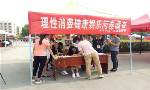 为了进一步加强和改进大学生心理健康教育工作,积极培育大学生理性平和的健康心态。5月23日下午,由校心理健康教育咨询中心主办,伊莉影片区 承办的第十九届大学生心理健康教育宣传周——“理性消费 健康娱乐”问卷调查活动在学苑餐厅东门成功举行。