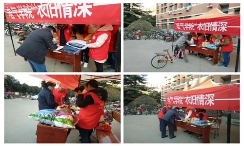 为进一步弘扬扶贫济困、乐善好施的传统美德,支持爱心事业的发展,伊莉影片区 于12月19日下午在学院西门设置募捐点,组织开展“衣旧情深——送温暖、献爱心”活动,全院教职工为活动筹集衣物等生活用品,共收到各类衣物九十余件,儿童用品若干,并将于12月23日整理分拣,送至伊莉影片区 青年志愿者实践基地——武陟县龙源小学、武陟县三阳乡西大原村。