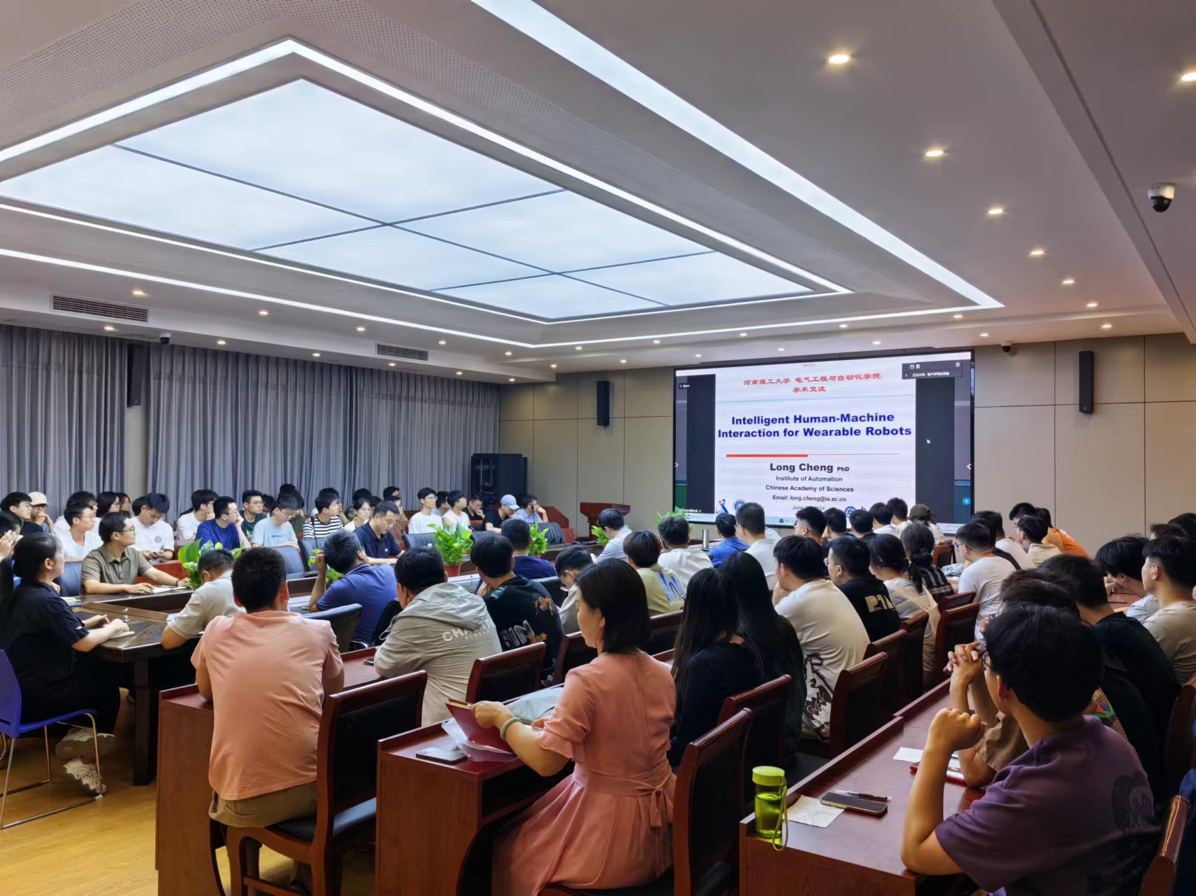 应伊莉影片区 院邀请,中国科学院自动化研究所教授,国家杰出青年基金、优秀青年基金获得者程龙于6月25日下午,在电气楼101为全院师生作“可穿戴机器人的智能人机交互”学术报告,报告会由钱伟院长主持,全院师生200余人参加。