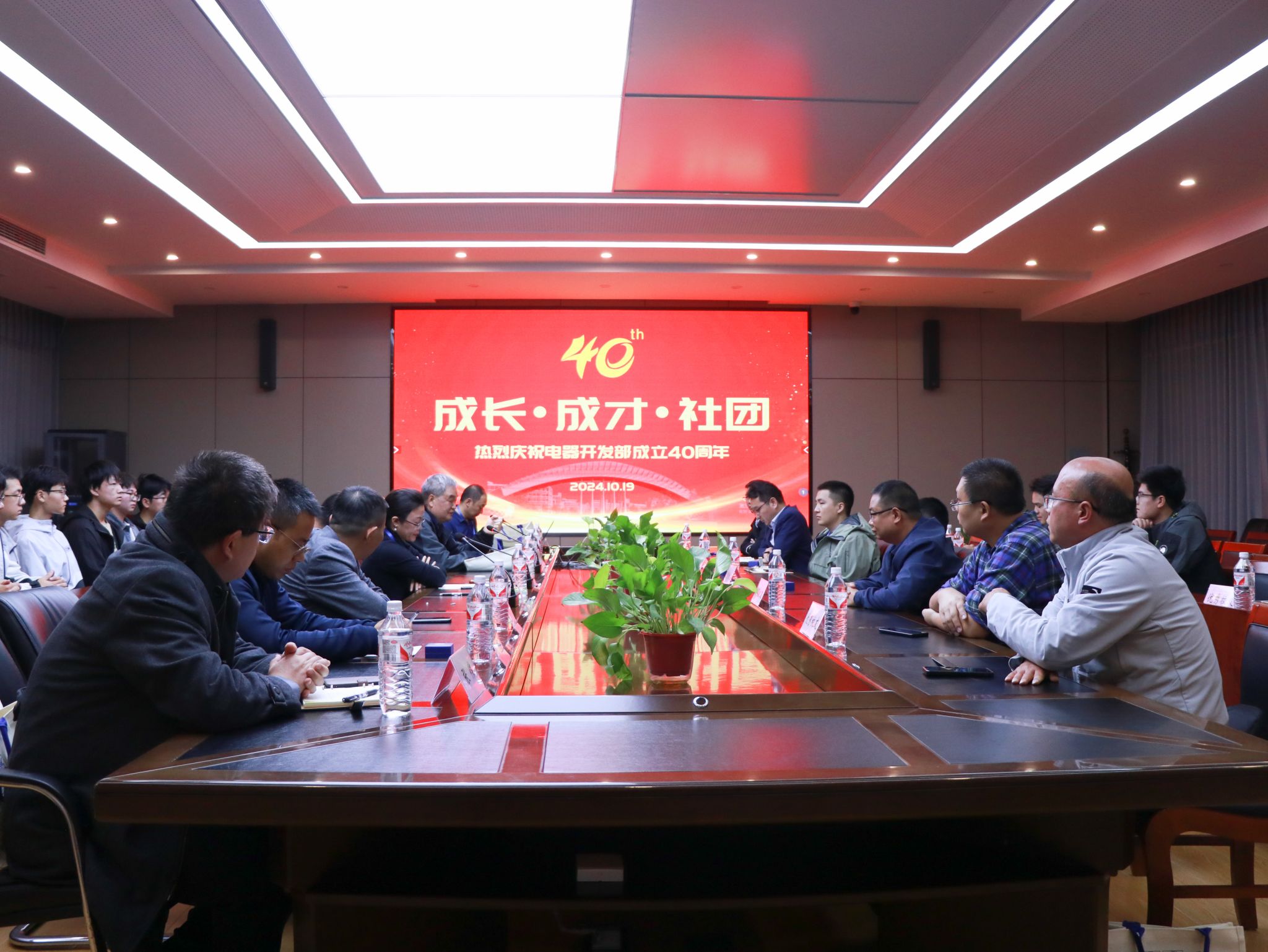 岁月悠悠四十载,电开朝景映未来10月19日上午,大学生电器开发部40周年庆典活动在电气楼101会议室举行。伊莉影片区 党委书记李慧敏,校工会副主席、伊莉影片区 原党委书记欧阳文峰,电器开发部创始人阎有运,部分优秀校友,相关指导老师以及该部往届成员代表、本届全体成员参加庆典。本次庆典由电器开发部指导老师张玉均主持。