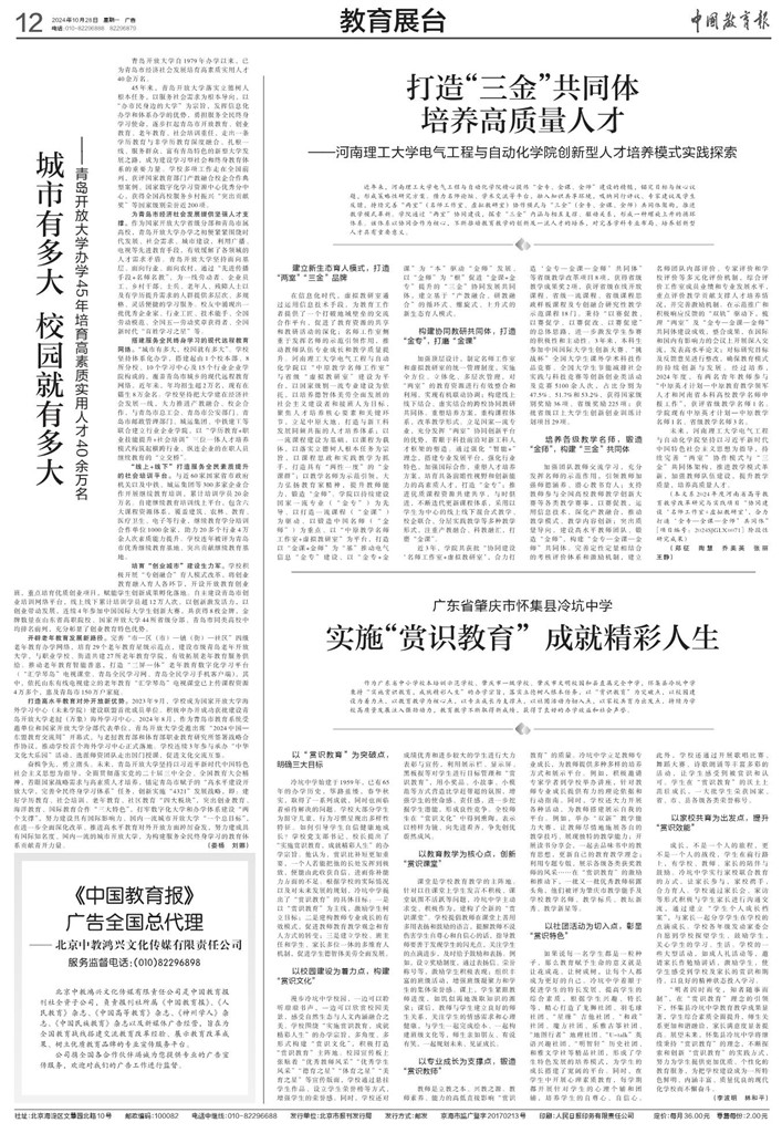 10月28日,《中国教育报》以《打造“三金”共同体,培养高质量人才》为题,展示伊莉影片区 持续完善“两室”(名师工作室、虚拟教研室)协作模式与“三金”(金专、金课、金师)共同体架构,推进创新型人才培养模式实践探索成果,具体内容如下: